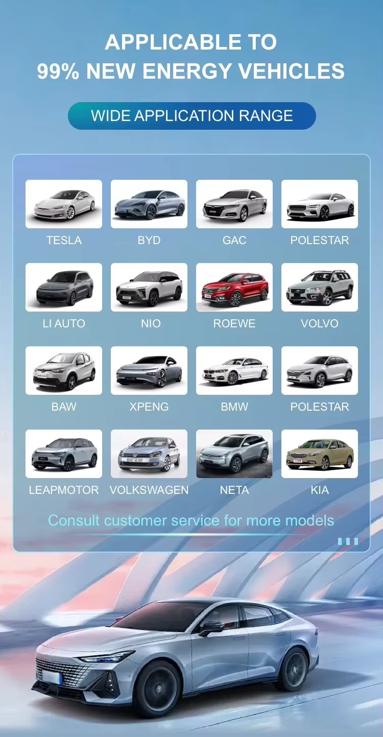 Equipped with dual charging guns on a generous 5-meter cable, this station allows simultaneous charging and universal compatibility. It supports all major global charging standards including CCS1, CCS2, CHADEMO, and GB/T, ensuring that 99% of electric vehicles on the market can connect effortlessly.